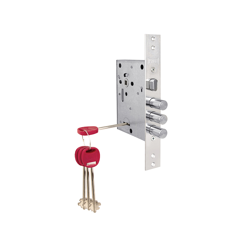 Замок врезной сувальдный Kale 442/L предназначен для металлических дверей под ручку, универсальный с реверсивной защелкой. Съёмная лицевая планка для установки врезным или вкладным способом, отверстия под стяжку для более надёжного крепления ручки. Легкие замки востребованного отечественного типо-размера с малым вылетом ригелей были специально разработаны компанией Kale Kilit для эконом сегмента и имеют приемлемую цену. В комплекте идет 4 длинных ключа (длина ножки 60 мм). Kale Kilit - компания зарекомендовавшая себя на российском рынке как производитель продукции, оптимальной по соотношению цены и качества.