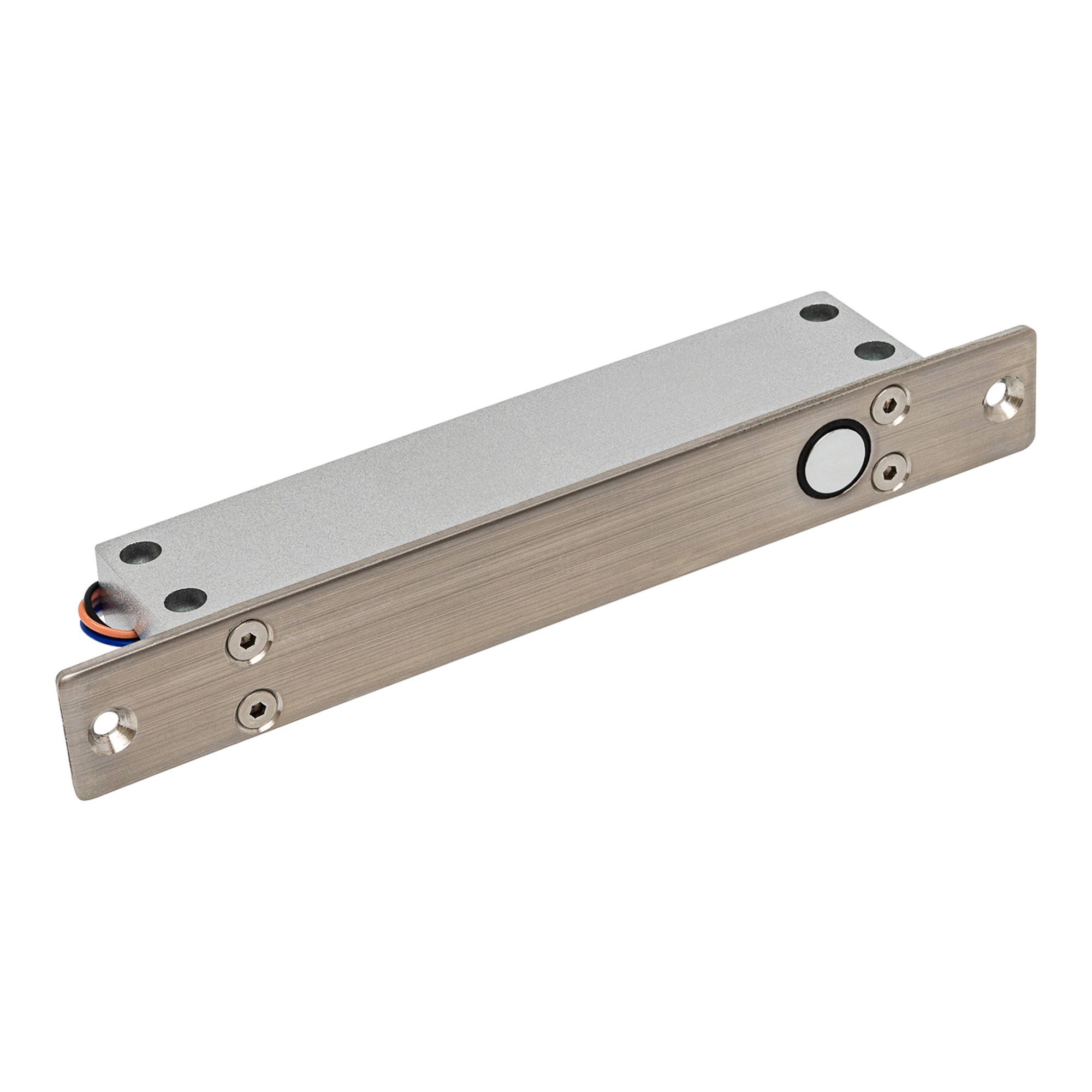 Врезной соленоидный электромеханический замок-защёлка со встроенным датчиком состояния двери предназначен для установки в вертикальном или горизонтальном положении. Оснащен светодиодным индикатором. Тип замка - NO. Укомплектован двухпозиционными DIP-переключателями, задающими время автоматического запирания: 0, 3, 6, 9 с.Механизм замка - соленоидный. Наработка на отказ - 5 млн циклов. Питание - DC 12 В, потребляемый ток в режиме ожидания - 0.15 А, в рабочем режиме - 1.35 А.  Материал - нержавеющая сталь. Диапазон рабочих температур - 10 °С… + 25 °С. Габаритные размеры 192х25х37мм.