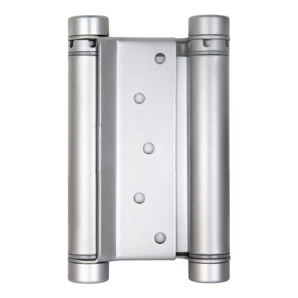 Петля двусторонняя (она же барная, пружинная, петля метро) применяется для деревянных дверей. Позволяет двери открываться в обе стороны, возвращает дверь в центральное положение (в створ).  Втулки петель выполнены из техно-полимера, обеспечивают амортизацию, гарантируют тихую и плавную работу, увеличивают срок службы более 200 000 циклов. Специальный тормоз замедляет движение двери и уменьшает количество колебаний, это дает возможность использовать двери большего веса и размера. В комплекте с петлями идут полимерные пластины,  облегчающие установку и гарантирующие надежное крепление.Выполнена из высококачественных материалов.Толщина дверного полотна 100.4 = 25-30 мм  125.5 = 30-40 ммПроизводство: Италия.