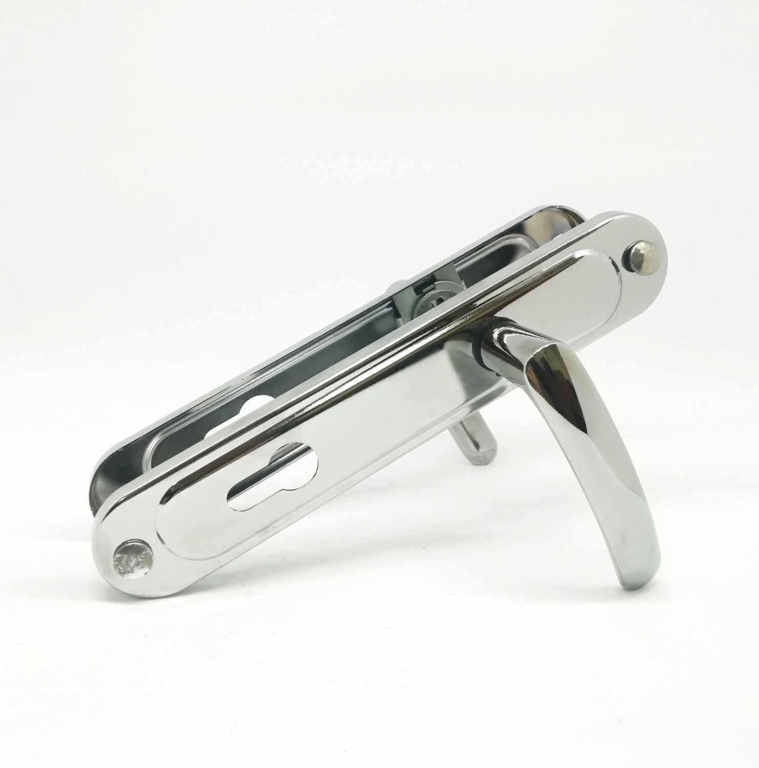 Ручка дверная на планке РФ1-85.02 предназначена для установки в деревянные и металлические двери толщиной 35-50 мм. Межосевое расстояние 85 мм. Цвет хром.