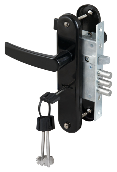 Замок врезной 8-сувальдный ЗВ9-8/13 с защелкой и фалевыми ручками предназначен для установки в двери толщиной 40-50 мм. Замок универсальный, его можно устанавливать как в правые, так и в левые двери, переустановив защелку. В комплекте: накладки с фалевыми ручками "черный муар", 3 стальных ключа длиной 70 мм. Покрытие корпуса — цинковое. Покрытие лицевой и ответной планок — никелевое. Замок имеет защиту от высверливания, защиту от отмычек. Изготовлен из высокопрочных материалов. Имеет защитное покрытие. Количество секретных комбинаций - 250 000. Три ригеля диаметром 11,7 мм с вылетом 21 мм. Бэксет: 48,5 мм. Межосевое расстояние: 55 мм.
