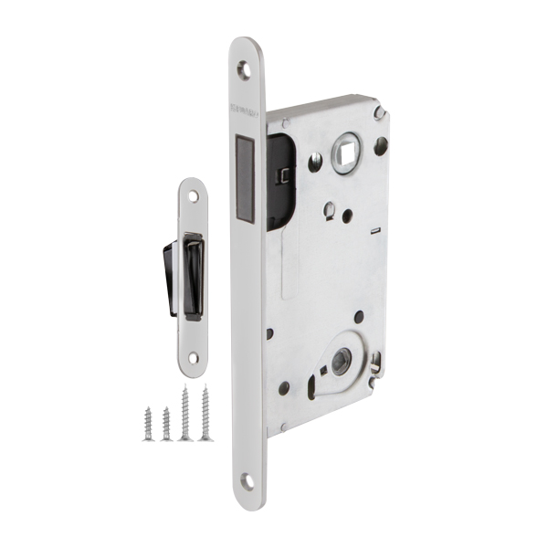 Бесшумная магнитная защелка Fuaro 5300-M-WC изготовлена в соответствии с требованиями ГОСТ 5089-2011.Предназначена для установки в деревянные межкомнатные и сантехнические двери, подходит для дверей левого и правого открывания. Корпус выполнен из стали с надежным гальваническим покрытием. Магнитный механизм обеспечивает бесшумность работы защелки. Защелка 5300-M-WC c  усиленным блоком пружин имеет высший 4 класс надежности (250 000 циклов открывания/закрывания). Отверстия под стяжные винты находятся на расстоянии 38 мм. Размер межосевого расстояния - 90 мм. Возможна установка дверных ручек на стяжные винты для более прочного крепления. Цвет: хром. В комплектацию входят: ответная планка с магнитной вставкой и крепежная фурнитура в цвет изделия.Защёлка Fuaro 5300-M-WC изготовлена в соответствии с требованиями ГОСТ 5089-2011.