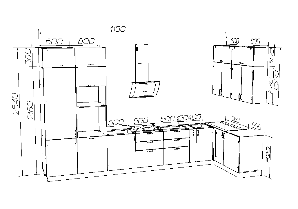 Дополнительно приобретается: пластиковый цоколь, высота подбирается в зависимости от выстроенной высоты ножек от 100 до 150 мм, столешница (предусмотрена толщина как 28 мм, так и 38 мм), техника, мойка, ручки (могут быть использованы как торцевые, так и фасадные).
