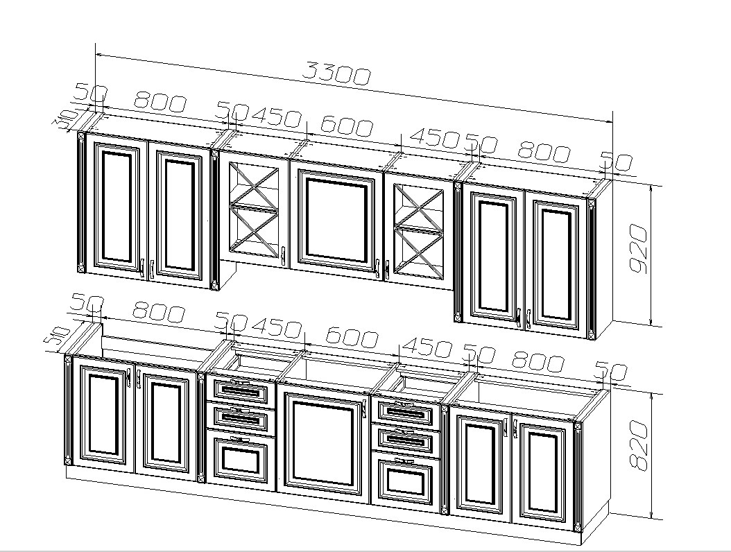 * На чертеже доступны все размеры кухни.