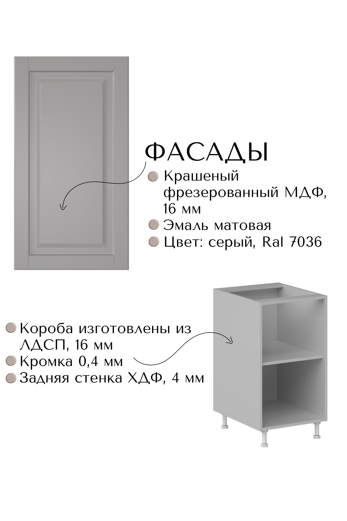 * Материал фасадов - крашенный фрезерованный МДФ, эмаль, 16 мм, односторонняя покраска.