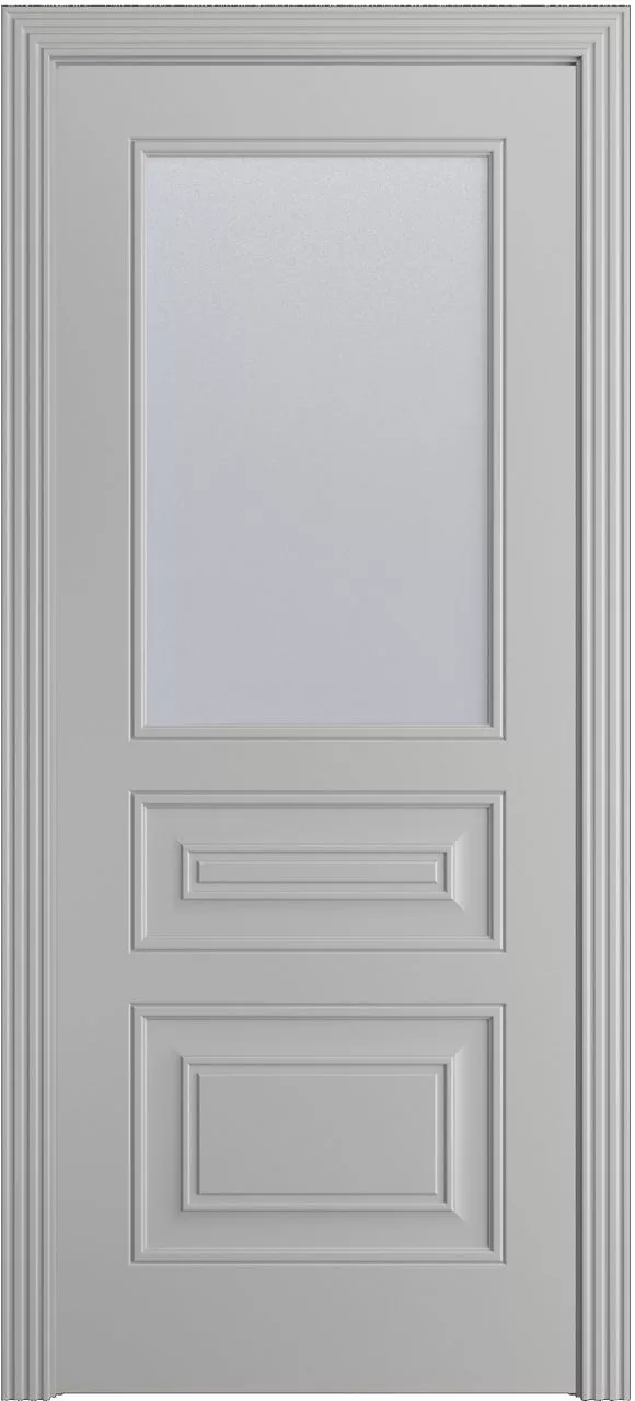 Дверь Версаль-2Ф ДО имеет каркасно-щитовую конструкцию с фрезерованной поверхностью полотна, имитирующей филенки. Модель остеклена светлым или темным сатинатом на выбор и покрыта эмалью.