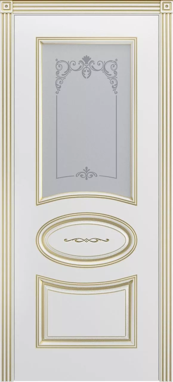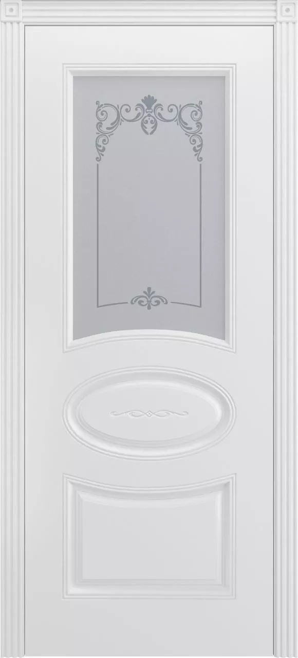 Дверь Ария В1 ДО имеет каркасно-щитовую конструкцию с фрезерованной поверхностью полотна, имитирующей филенки. Фигурная фрезеровка на «филенках» отсутствует, есть вензель между «филенками». Остекление на выбор сатинированное или с фотопечатью. Модель покрыта эмалью.
