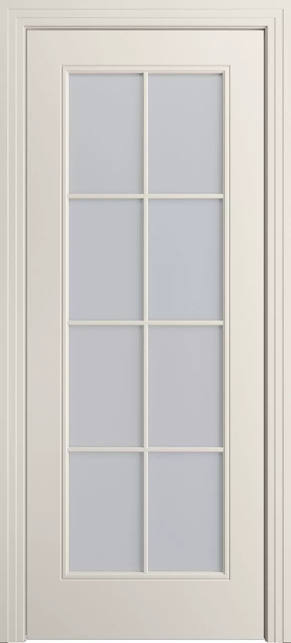 Дверь Версаль-Ф Loft (8) ДО имеет каркасно-щитовую конструкцию с фрезерованной поверхностью полотна и английской решеткой на 8 квадратов. Модель остеклена светлым или темным сатинатом на выбор и покрыта эмалью.