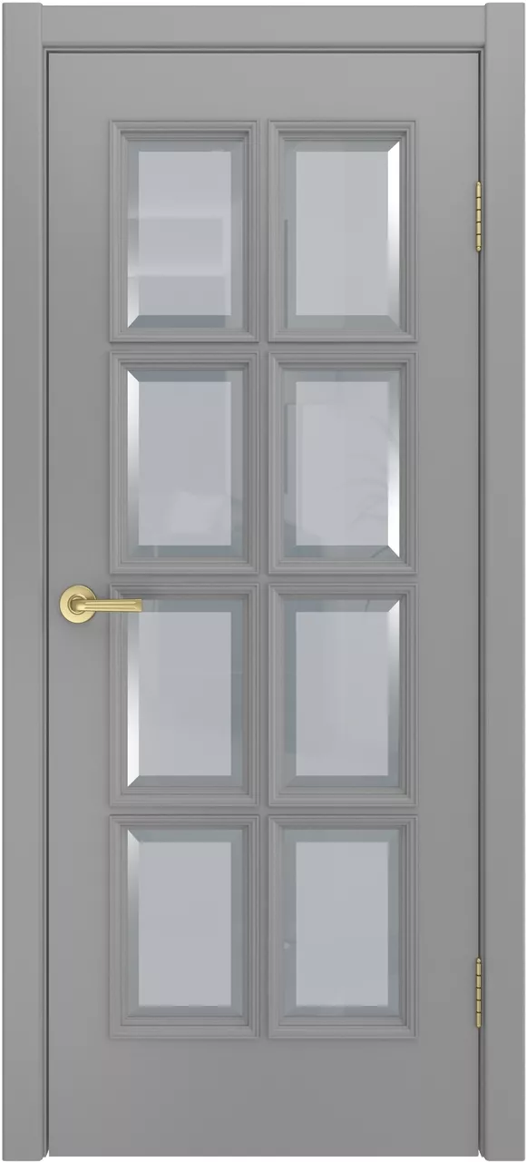 Дверь Палермо ДО имеет каркасно-щитовую конструкцию с фрезерованной поверхностью полотна, имитирующей филенки, и накладным багетом. Модель покрыта эмалью и остеклена на выбор сатинатом или прозрачным стеклом с фацетом или имитацией фацета.