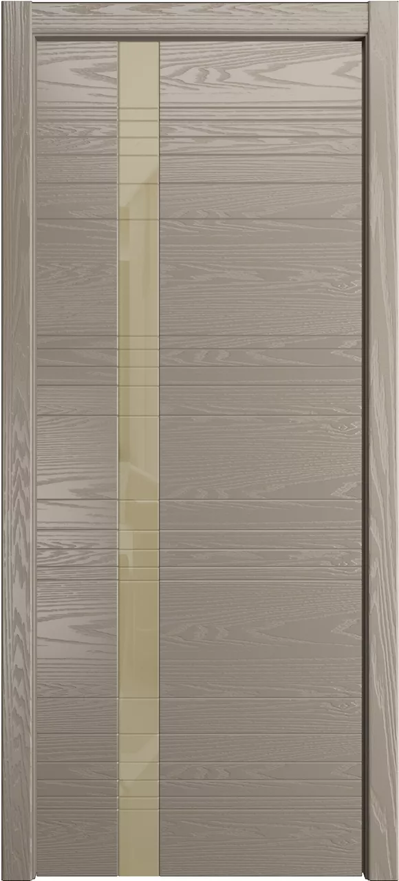 Дверь ID-H ДО имеет каркасно-щитовую конструкцию с фрезерованной поверхностью полотна. Модель остеклена лакобелем и покрыта натуральным шпоном ясеня или дуба на выбор.