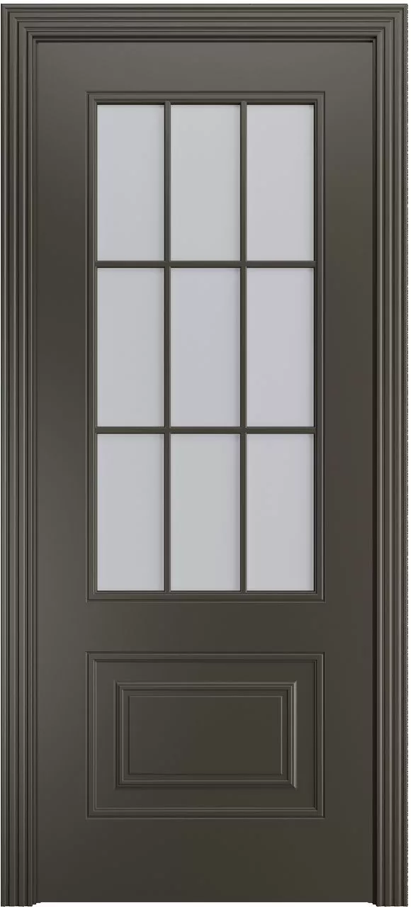 Дверь Версаль-Ф Loft (9) ДО имеет каркасно-щитовую конструкцию с фрезерованной поверхностью полотна и английской решеткой на 9 квадратов. Модель остеклена светлым или темным сатинатом на выбор и покрыта эмалью.