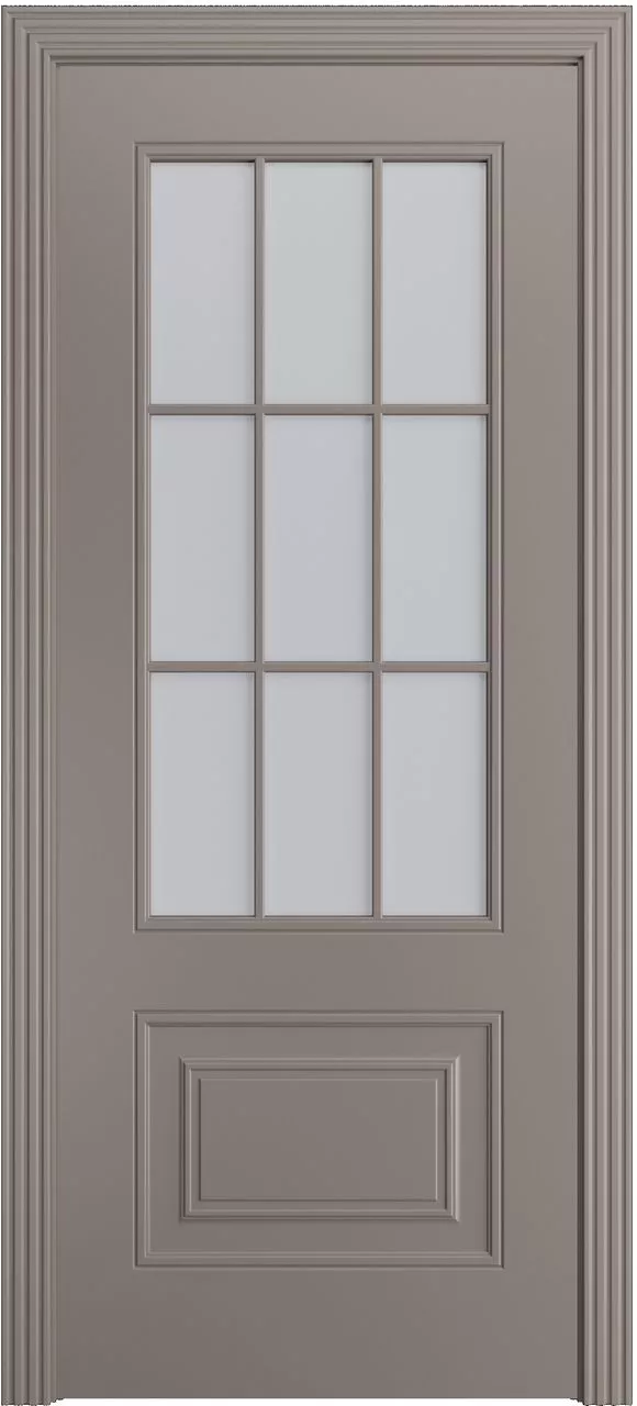 Дверь Версаль-Ф Loft (9) ДО имеет каркасно-щитовую конструкцию с фрезерованной поверхностью полотна и английской решеткой на 9 квадратов. Модель остеклена светлым или темным сатинатом на выбор и покрыта эмалью.