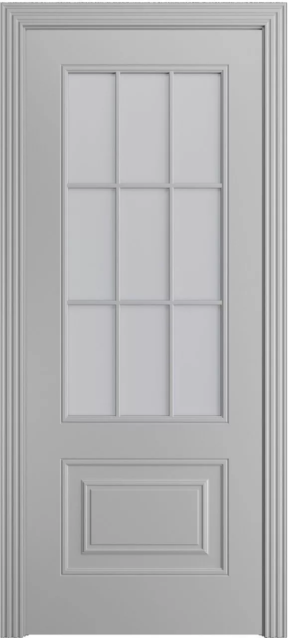 Дверь Версаль-Ф Loft (9) ДО имеет каркасно-щитовую конструкцию с фрезерованной поверхностью полотна и английской решеткой на 9 квадратов. Модель остеклена светлым или темным сатинатом на выбор и покрыта эмалью.