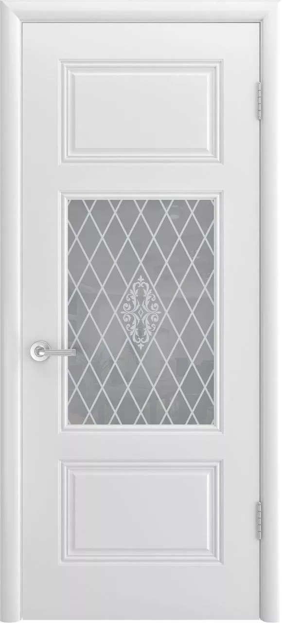 Дверь Терция Грейс В1 ДО имеет каркасно-щитовую конструкцию с фрезерованной поверхностью полотна, имитирующей филенки. Фигурная фрезеровка на «филенках» отсутствует. Остекление на выбор сатинированное или с фотопечатью. Модель покрыта эмалью.