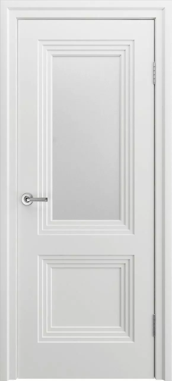 Дверь Каролина-2 ДО имеет каркасно-щитовую конструкцию с фрезерованной поверхностью полотна, имитирующей утопленные филенки. Модель остеклена на выбор светлым сатинатом, бронзовым сатинатом, прозрачным стеклом с гравировкой или прозрачным стеклом с фацетом. Покрыта эмалью.