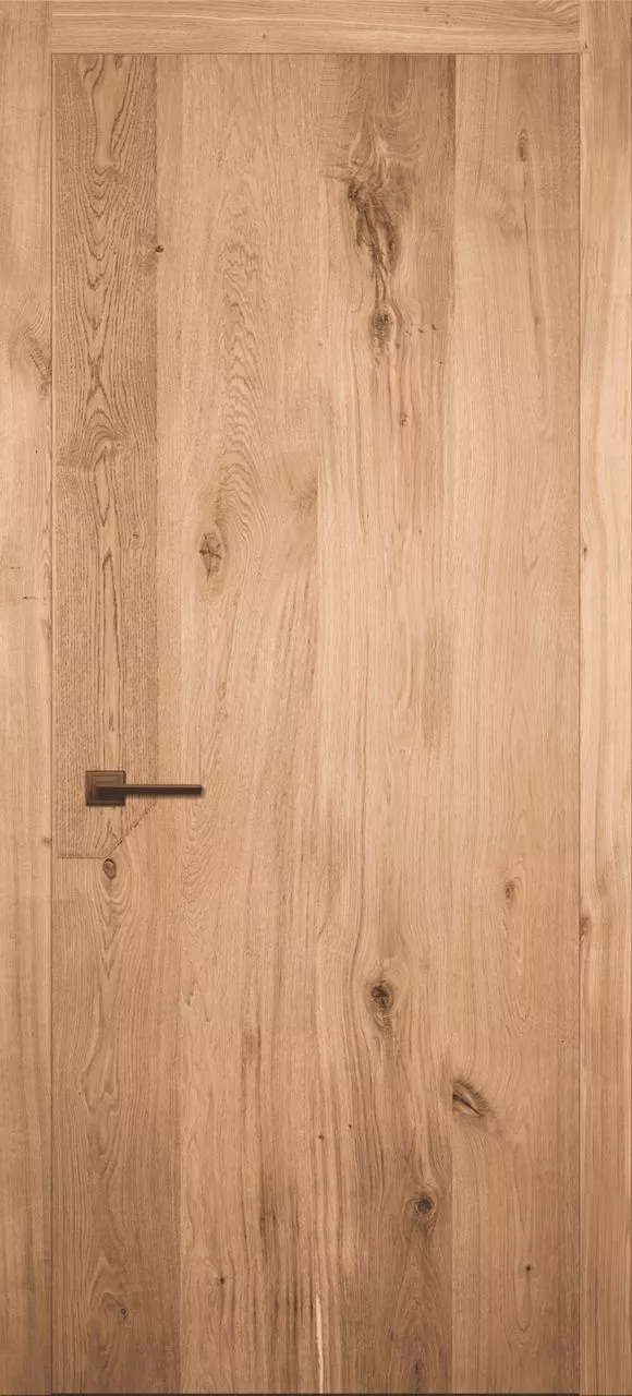 Дверь Легно-6 ДГ имеет каркасно-щитовую конструкцию с фрезерованной поверхностью полотна. Модель изготовлена по технологии DSW из внутренней рамки с цельным заполнением массивом и оклеена дубовыми щитами из нерошенной рустикальной ламели дуба. Покрыта морилкой и водным лаком.