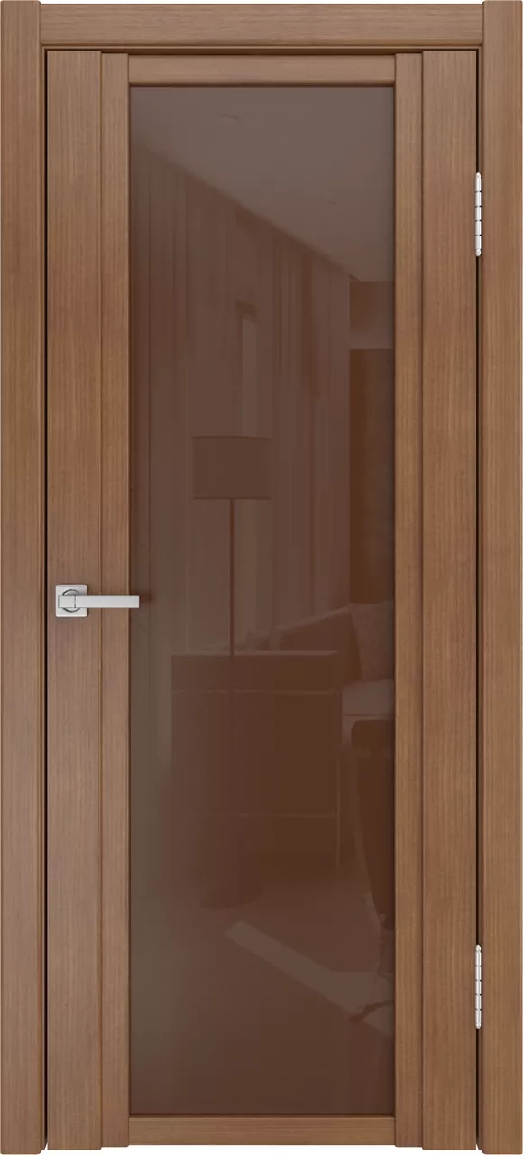 Дверь QDO X ДО имеет царговую конструкцию. Модель остеклена триплексом и покрыта натуральным шпоном ясеня, дуба или американского ореха на выбор.