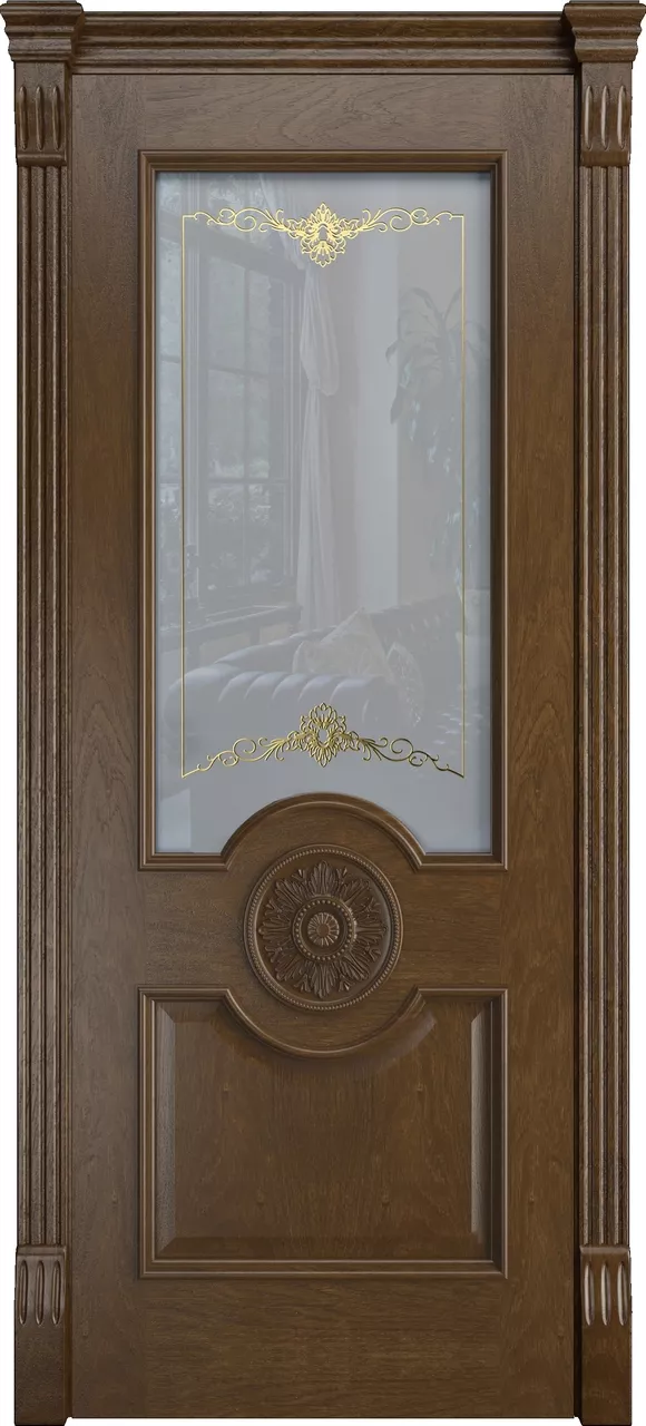 Дверь Портофино ДО имеет каркасно-щитовую конструкцию с фрезерованными филенками, лаконичным багетом и роскошным лепным декором. Модель остеклена стеклом с гравировкой, фотопечатью, наливным витражом или пескоструйным рисунком и покрыта натуральным шпоном ясеня или дуба на выбор.
