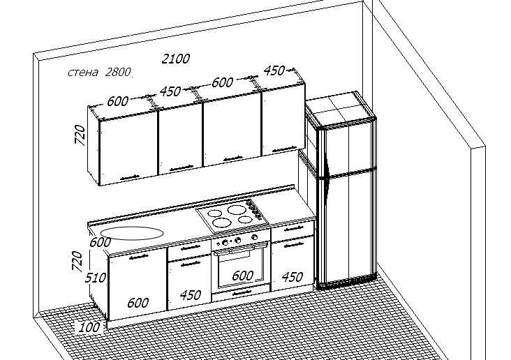 * На чертеже доступны все размеры кухни.