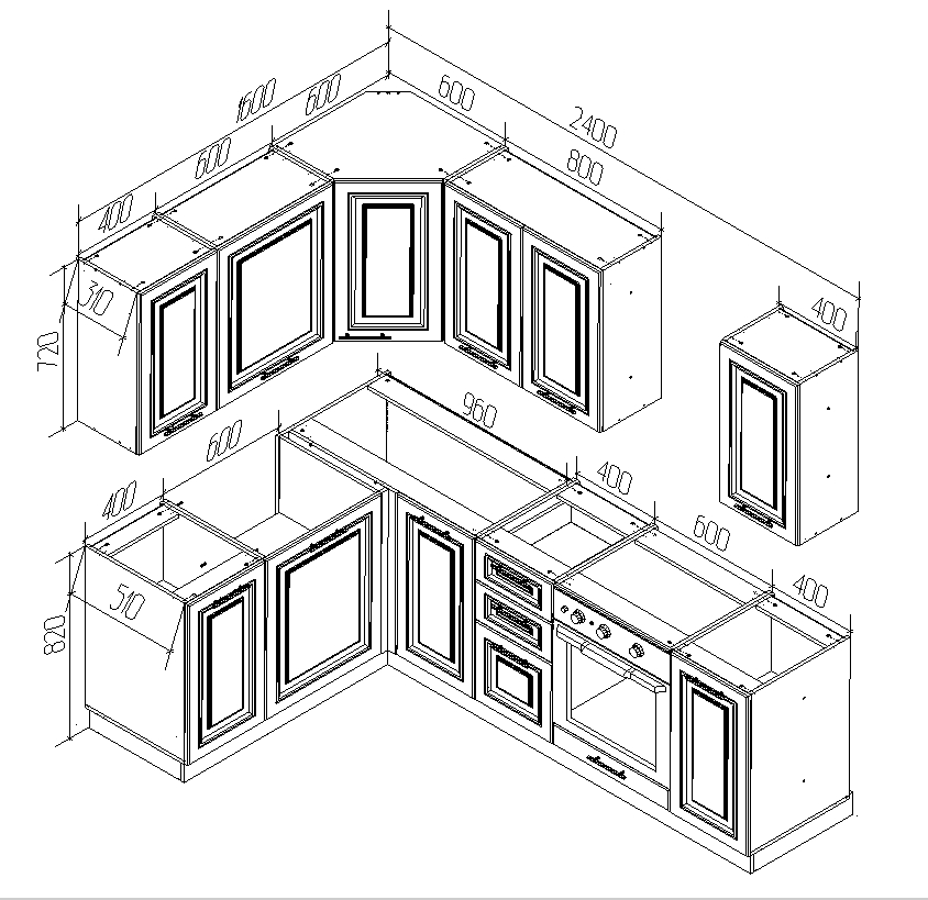 * На чертеже доступны все размеры кухни.
