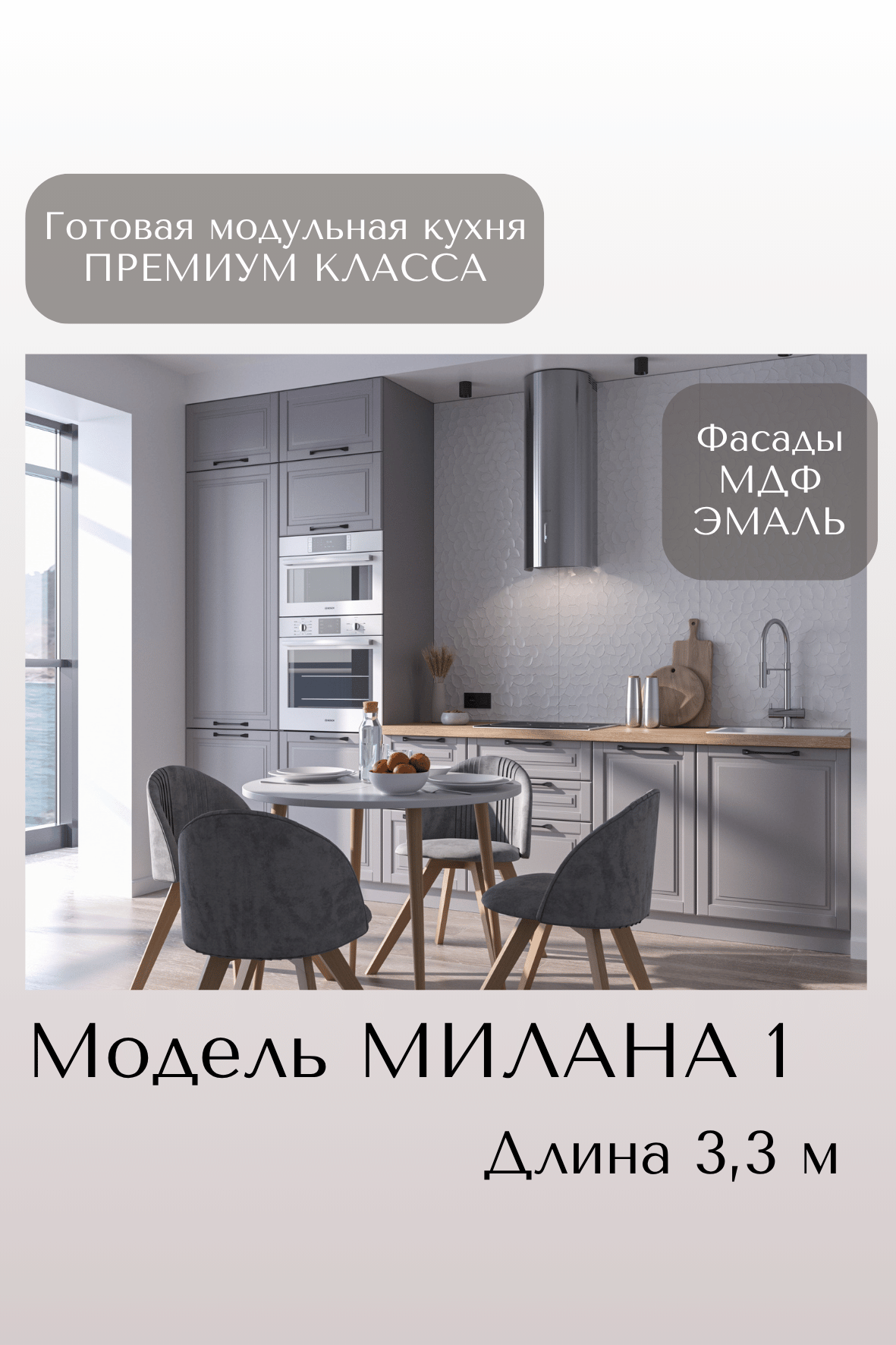 Дополнительно приобретается: пластиковый цоколь, высота подбирается в зависимости от выстроенной высоты ножек от 100 до 150 мм, столешница (предусмотрена толщина как 28 мм, так и 38 мм), техника, мойка, ручки (могут быть использованы как торцевые, так и фасадные).